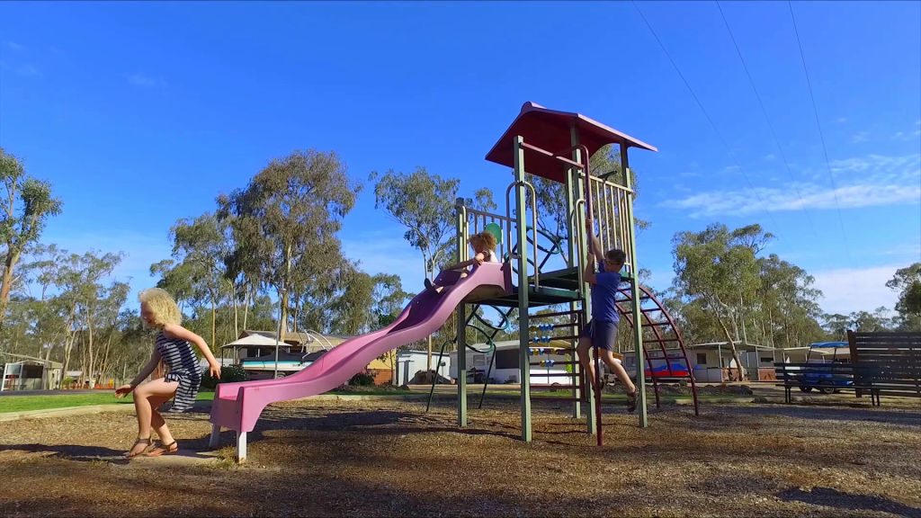 The Lake Eppalock Holiday Park has a kids adventure playground with plenty of room for the kids have a safe place to have fun!
