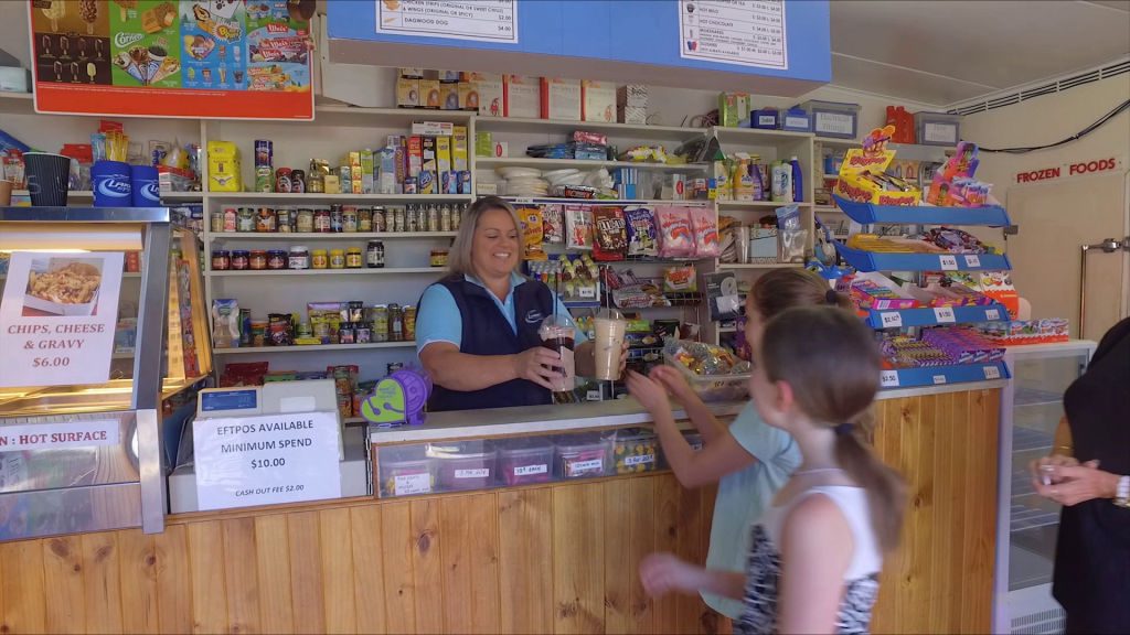 We have a kiosk with hot and cold food, drinks, swap & go gas, groceries, petrol, camping & fishing supplies. We can also give you updates on what fish are biting at the lake.